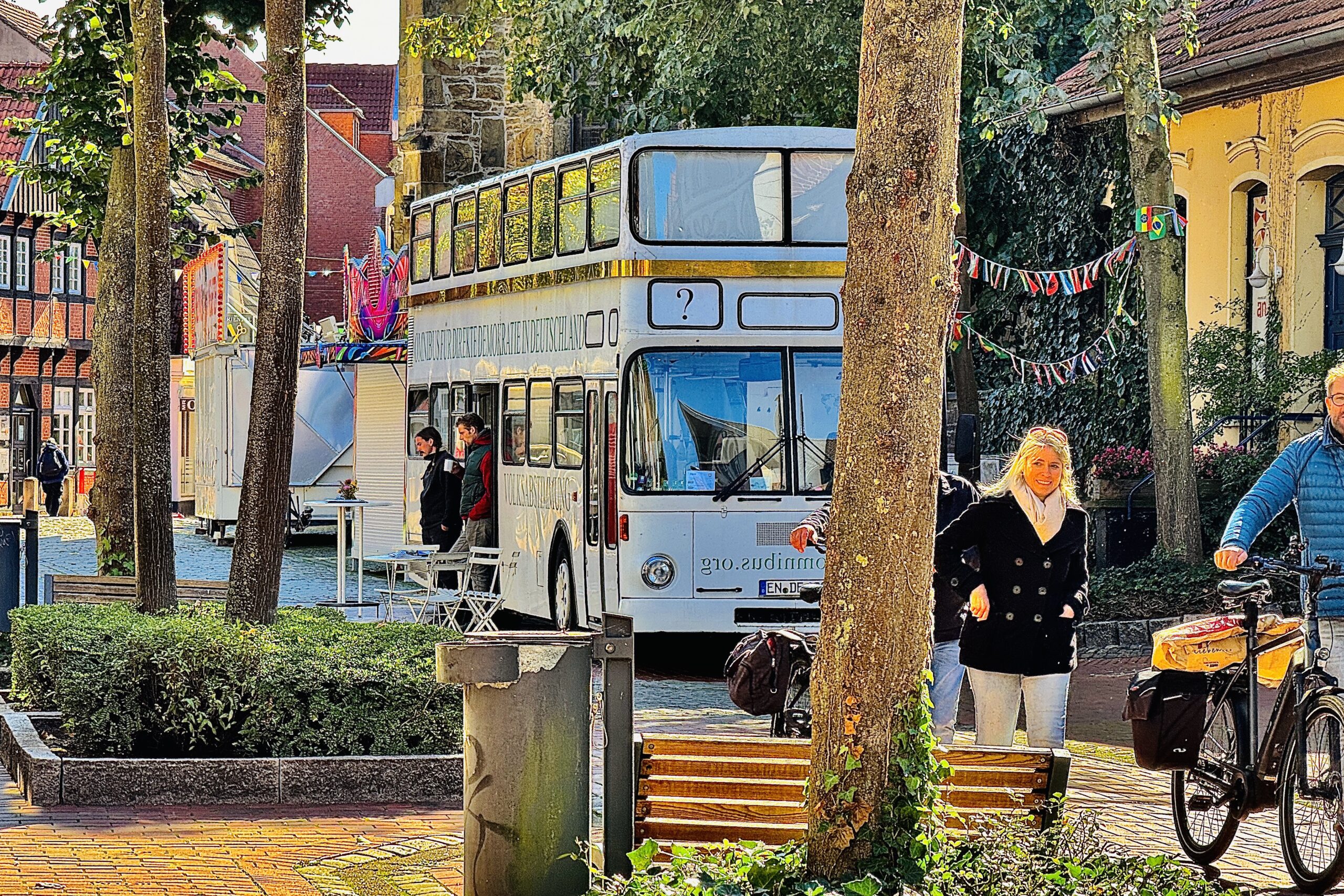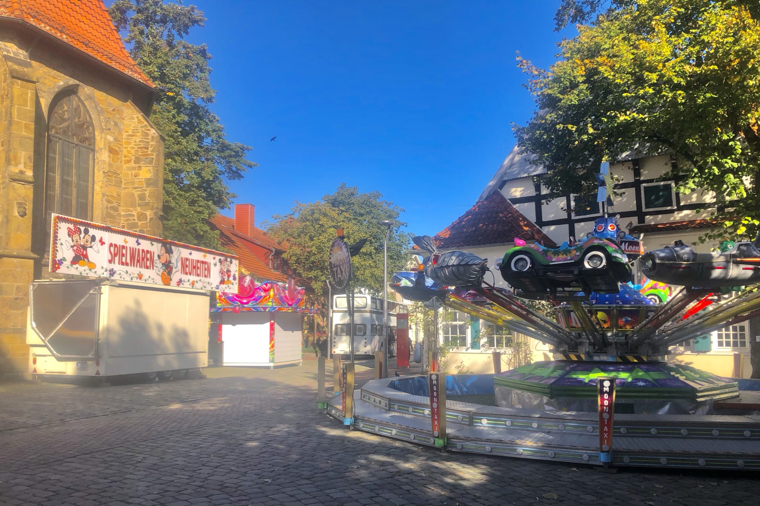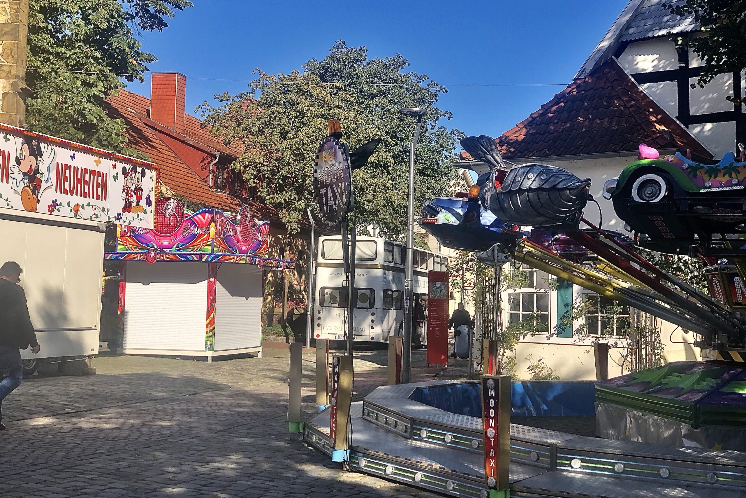 da gab es wieder eine abenteuerliche überraschung: die ganz enge altstadt und der platz, an dem wir stehen sollten, waren zugestellt mit einer kirmes – buden & fahrgeschäfte. die frau vom amt hat mir erklärt, daß sie übersehen hat, daß nicht beide „veranstaltungen“ gleichzeitig stattfinden können.