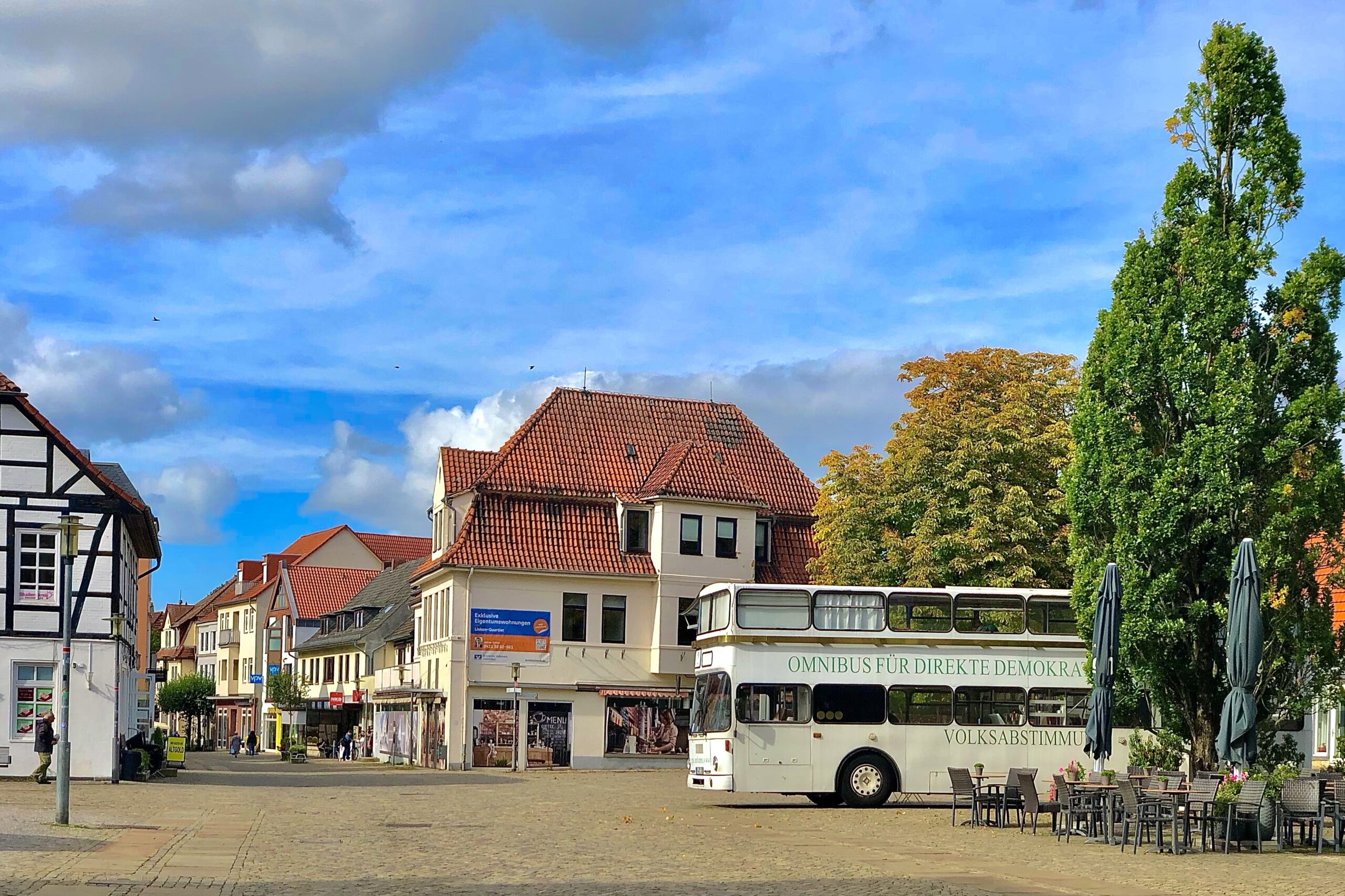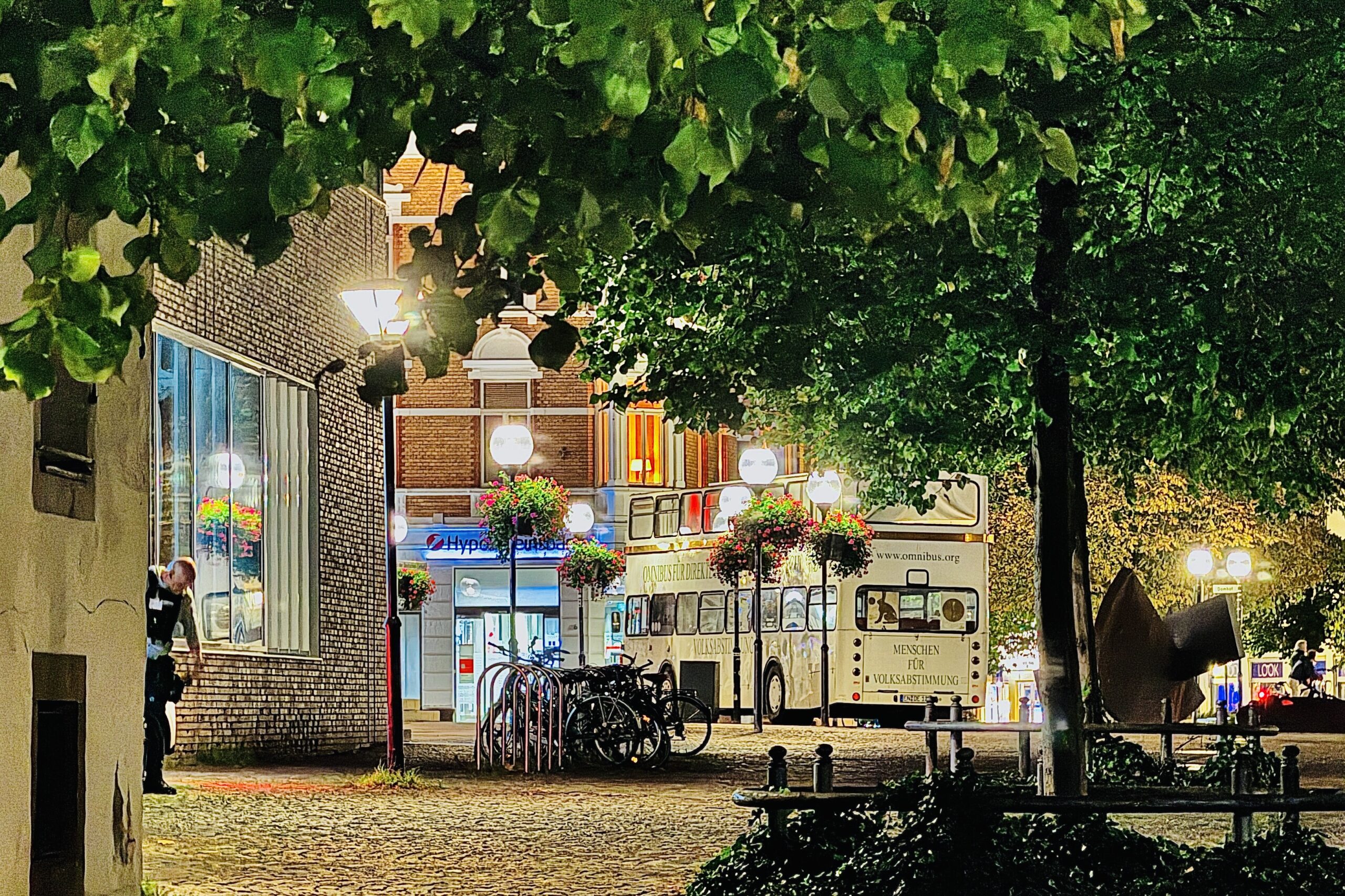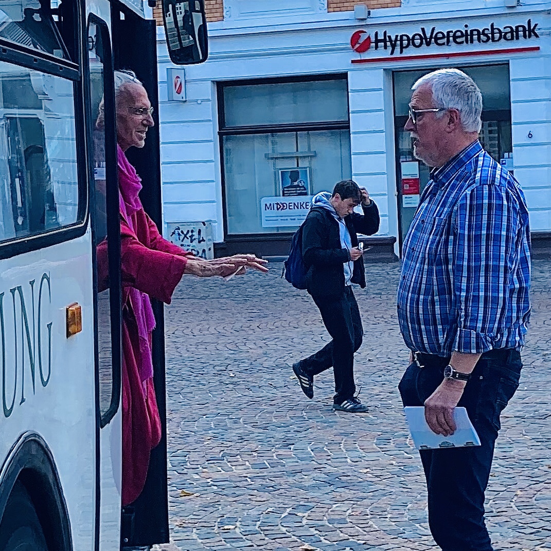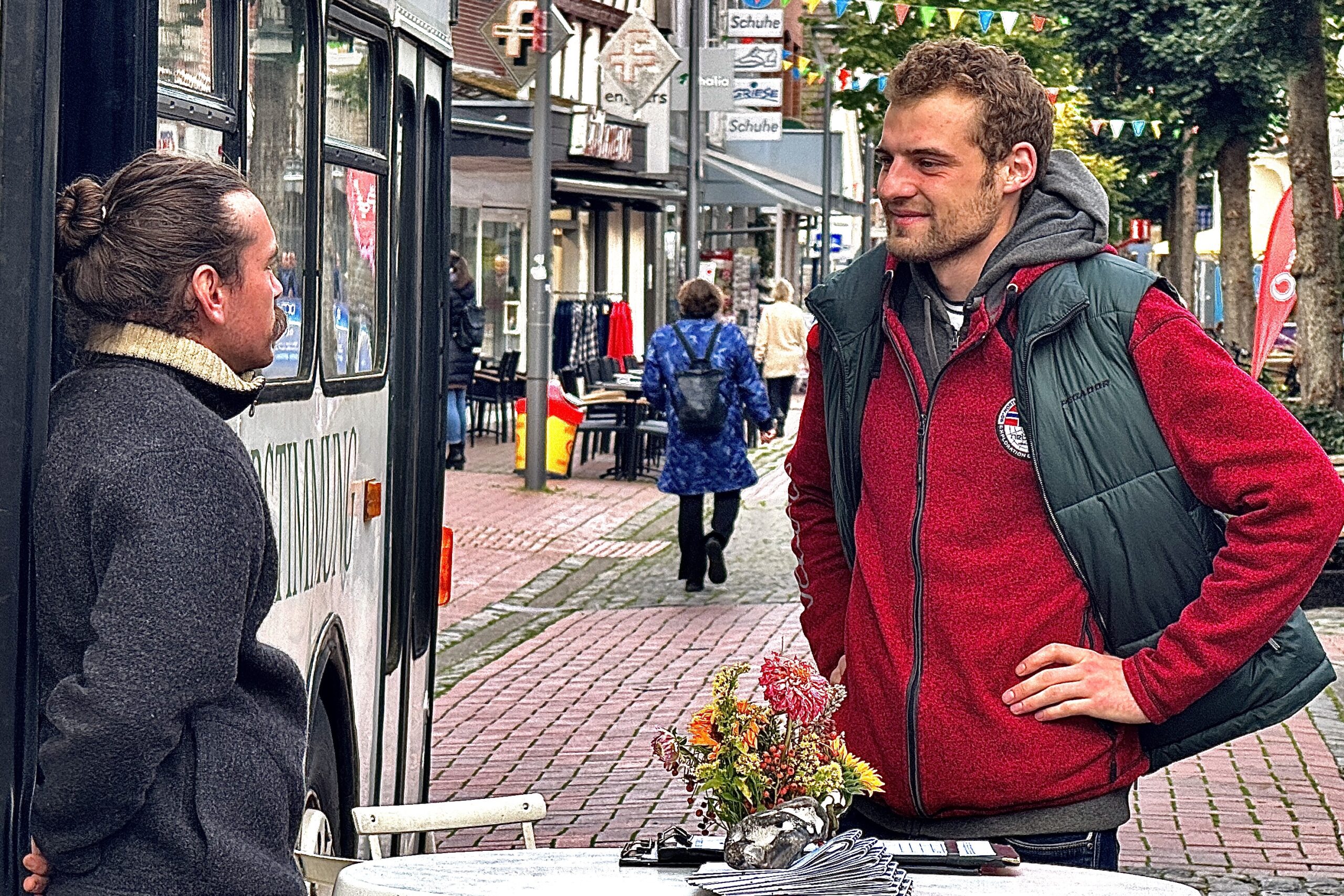 da gab es wieder eine abenteuerliche überraschung: die ganz enge altstadt und der platz, an dem wir stehen sollten, waren zugestellt mit einer kirmes – buden & fahrgeschäfte. die frau vom amt hat mir erklärt, daß sie übersehen hat, daß nicht beide „veranstaltungen“ gleichzeitig stattfinden können.