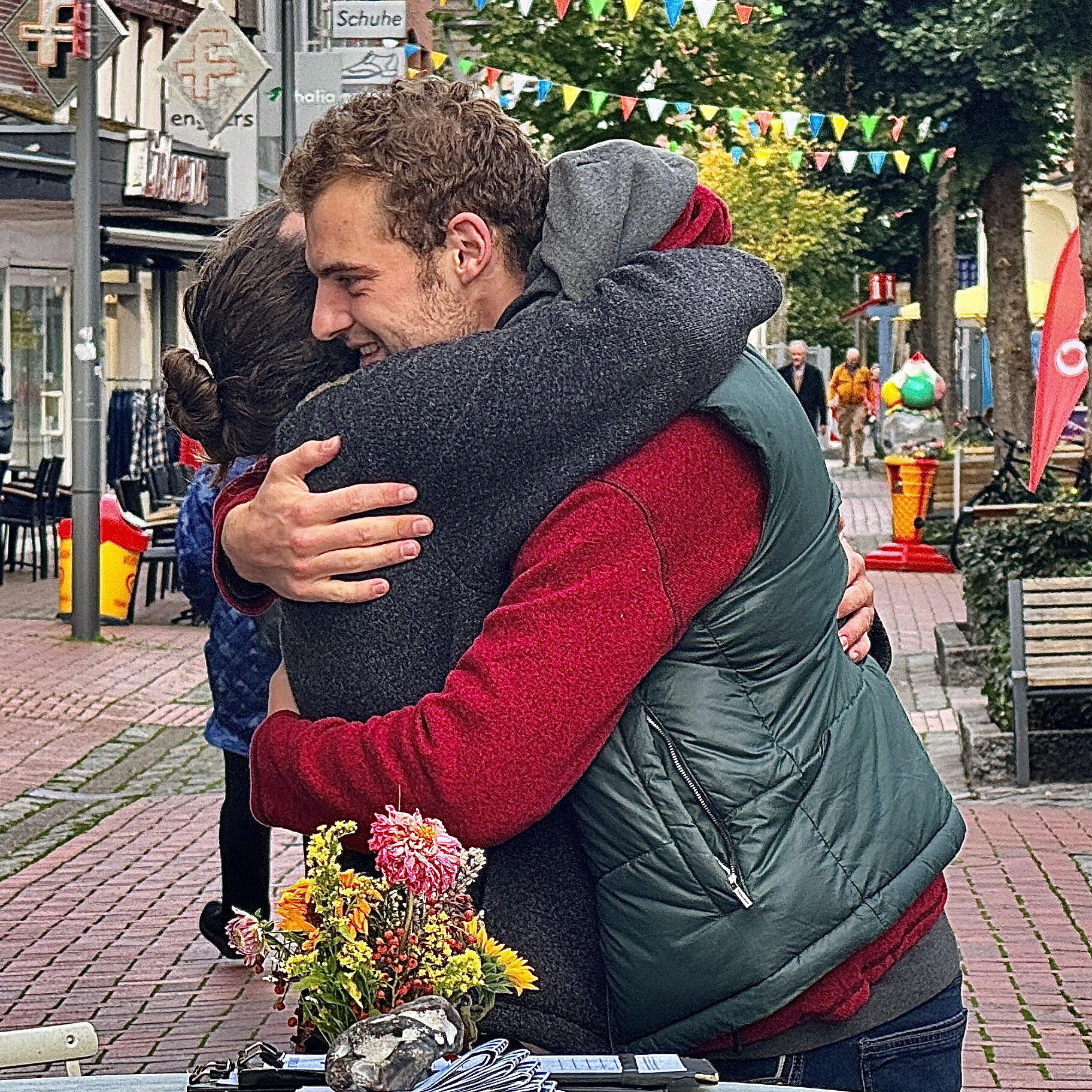 seit wir wieder unterwegs sind, passierte es schon häufiger, daß unsere gesprächspartnerinnen sich mit herzlichen umarmungen & den besten wünschen einzeln von uns verabschieden.