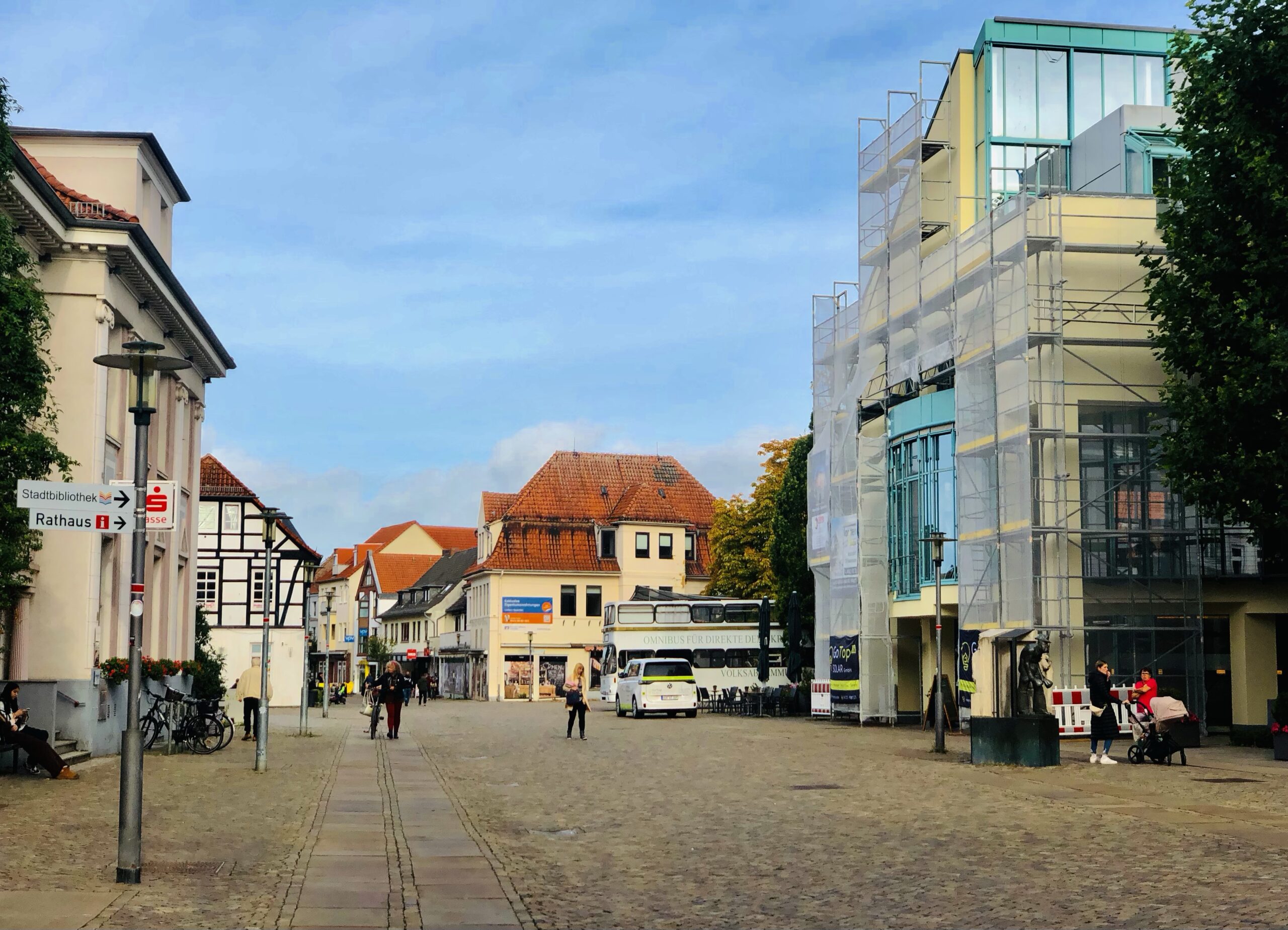 osnabrück ist im zweiten weltkrieg total zerbombt worden, aber unser standort war in der kleinen, sehr liebevoll restaurierten altstadt mit aufschlußreichen geschichtlichen details, während die nachkriegsbauten ziemlich häßlich waren.