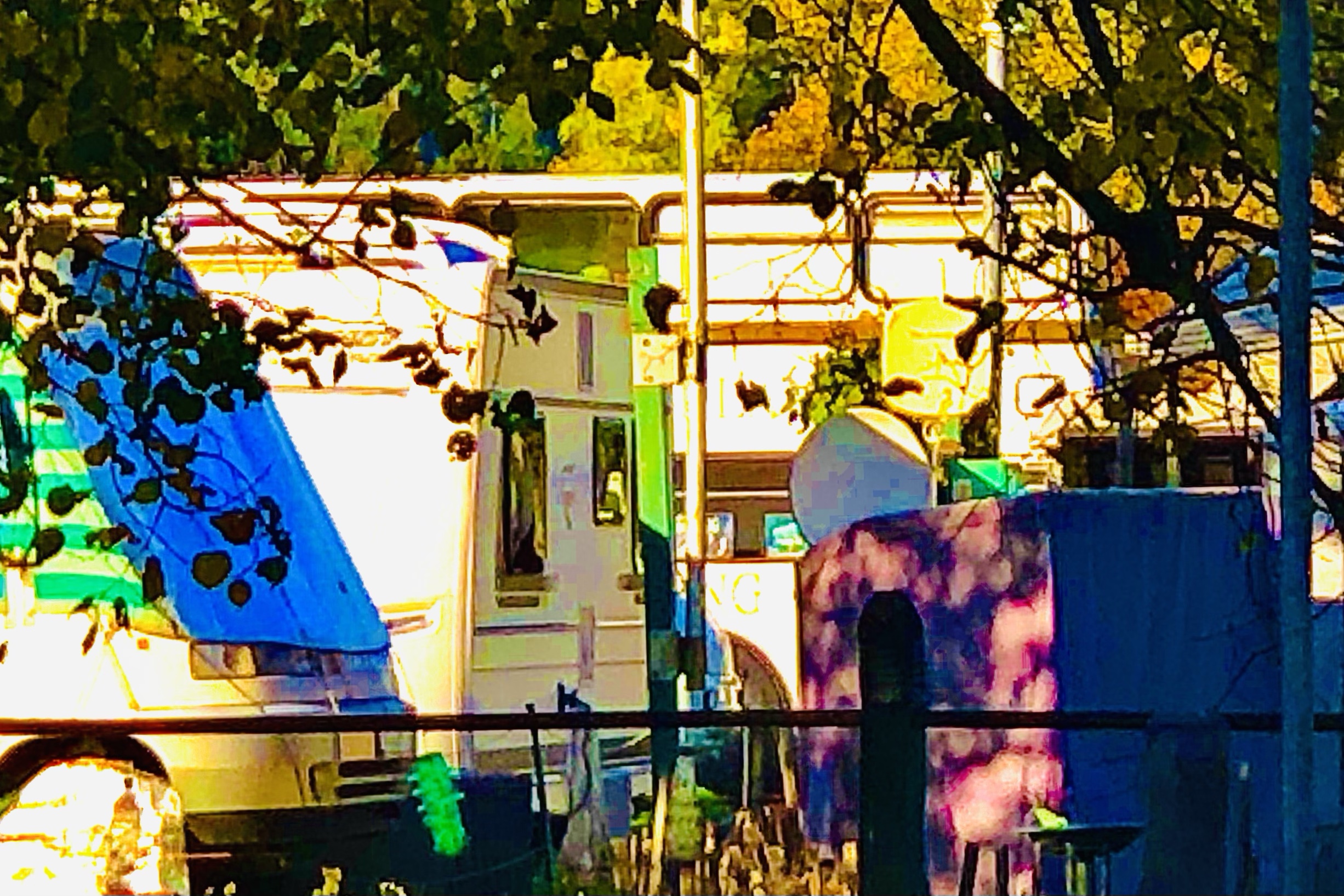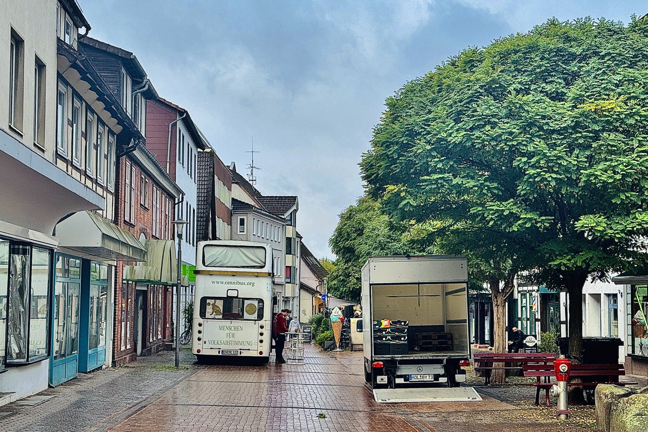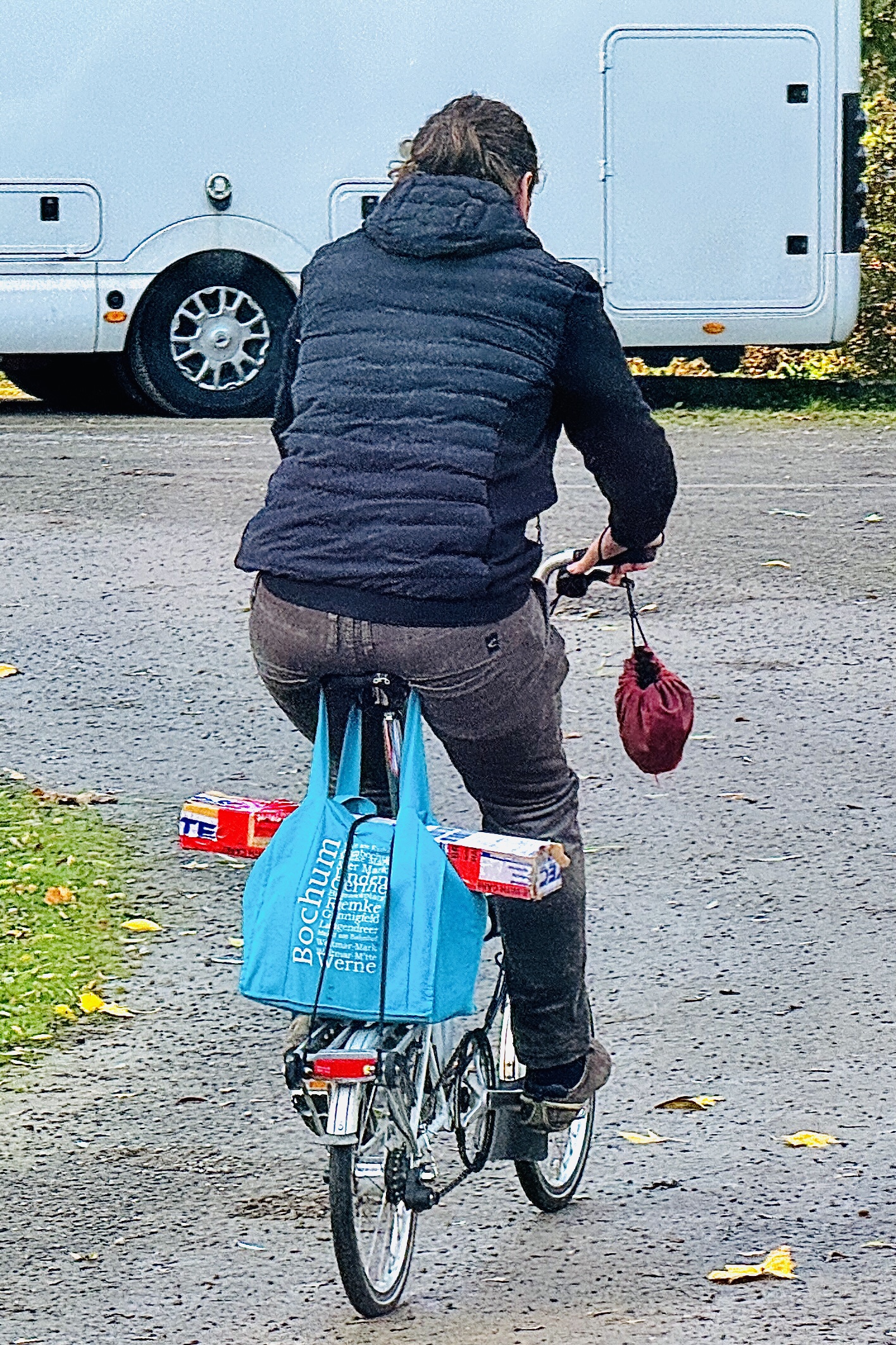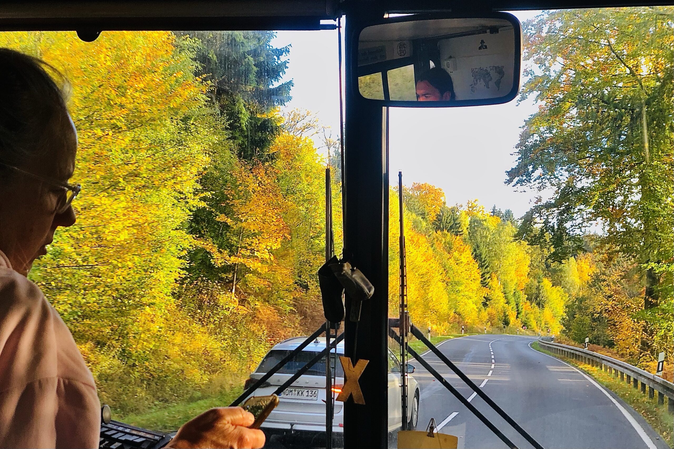 als wir bei einbruch der dunkelheit ankamen und nachdem elias sich umständlich eingefädelt hatte, kam ein selbsternannter platzhirsch und reklamierte, daß wir (bei kaltem nieselwetter) seine „veranda“ blokkieren würden. ein anderer wohnmobilfahrer hatte das ganze beobachtet und uns ermuntert, daß wir uns quer vor seinen wagen stellen – er würde sowieso nicht weg fahren. er hat sich als afd-wähler geoutet und war sehr an unserer arbeit interessiert – am ende hat er uns einen zwanzig euro schein zugestekkt und damit eine übernachtung spendiert.