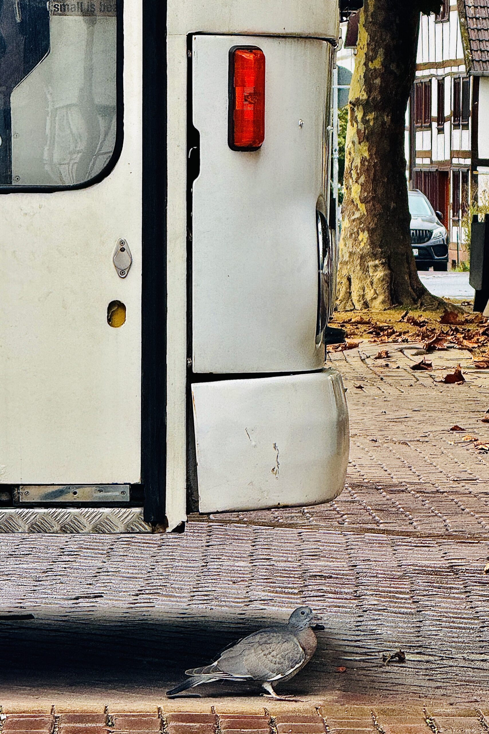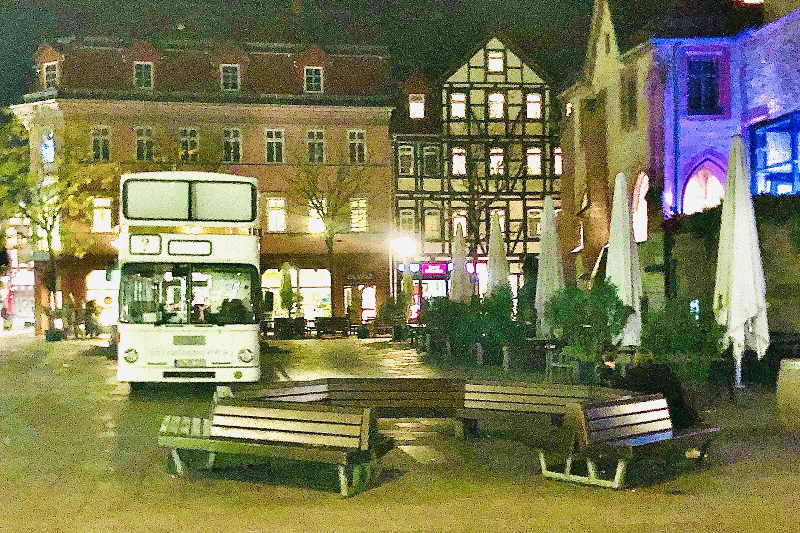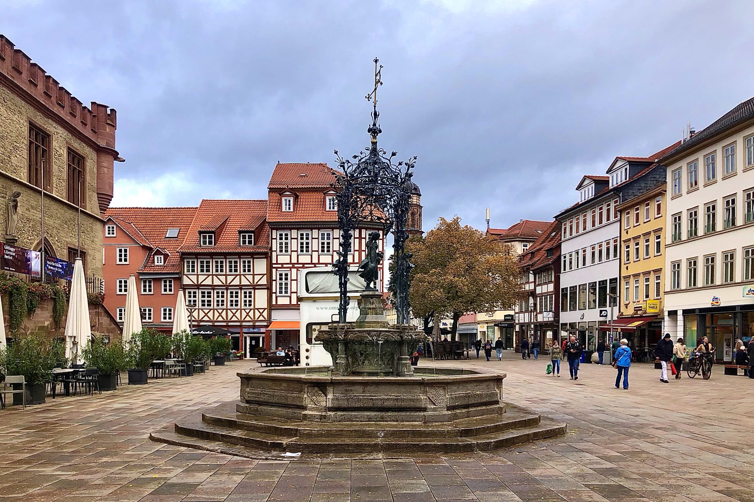 gestern nachmittag sind wir ins dunkle hinein durch eine wunderbare herbstlandschaft nach göttingen gefahren und haben uns mal wieder sehr fotogen vor das alte rathaus und neben den „gänselieselbrunnen“ gestellt. es ergab sich eine absurde situation: wir hatten zwar eine genehmigung, dort zu stehen, aber nicht die „durchfahrterlaubnis“, um auf den platz zu fahren. elias ist dann gleich früh, nachdem er auf nüchternen magen die gasflasche gewexelt hatte, ins neue rathaus gelaufen und hat die für uns bereitliegende erlaubnis abgeholt.