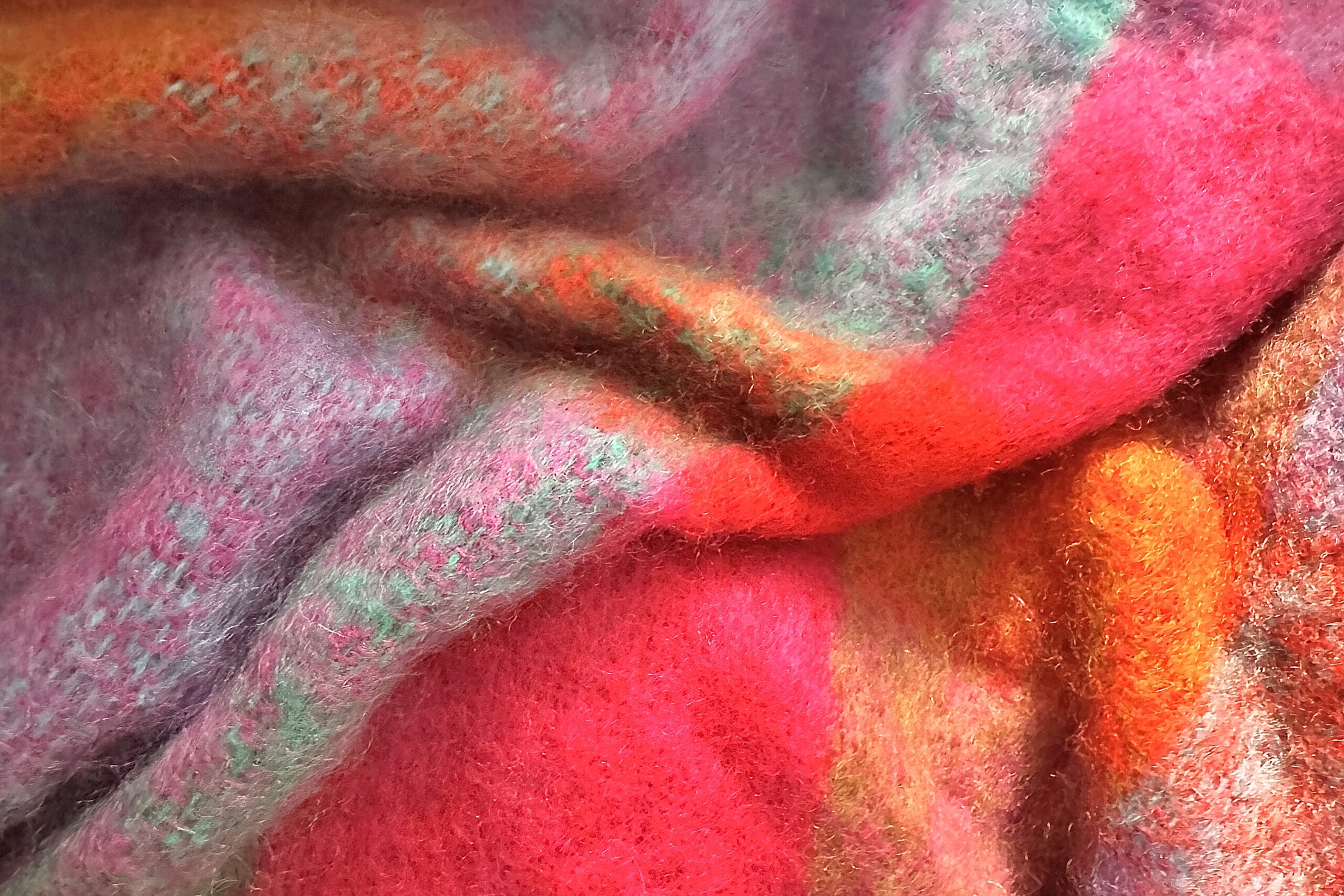 nachdem ich die letzten nächte hauptsächlich mit frieren beschäftigt war und morgens das gefühl hatte, überhaupt nicht geschlafen zu haben, bin ich letzte nacht ins bett gestiegen und sofort eingeschlafen, weil ich mir eine superkuschelige mohairdekke (irische handarbeit) in den flamingo-farben gekauft habe – eine super-investition, die sich sofort amortisiert hat.