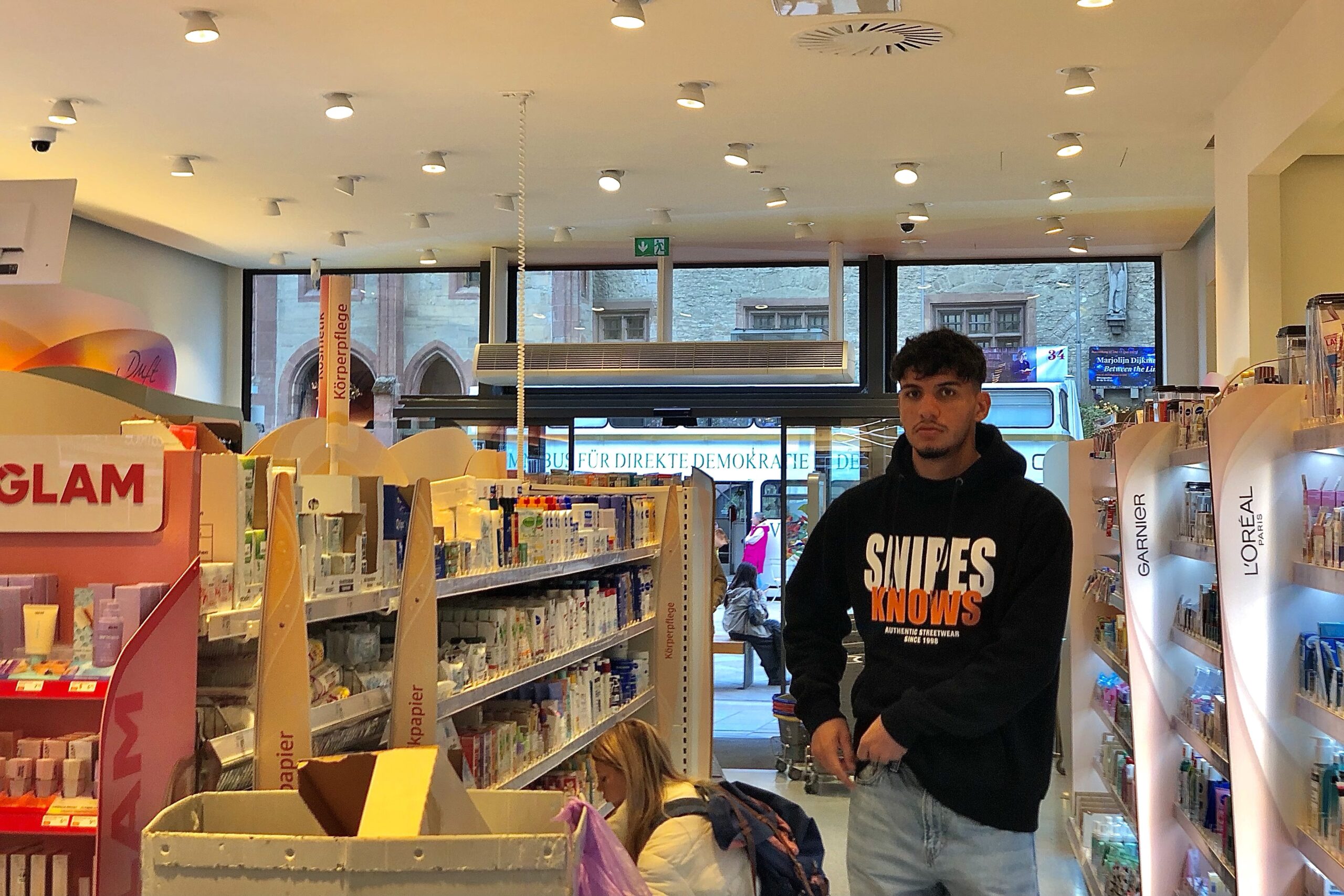 in göttingen stehen wir gegenüber der größten dm filiale, die ich bisher gesehen habe: riesengroß auf zwei etagen!