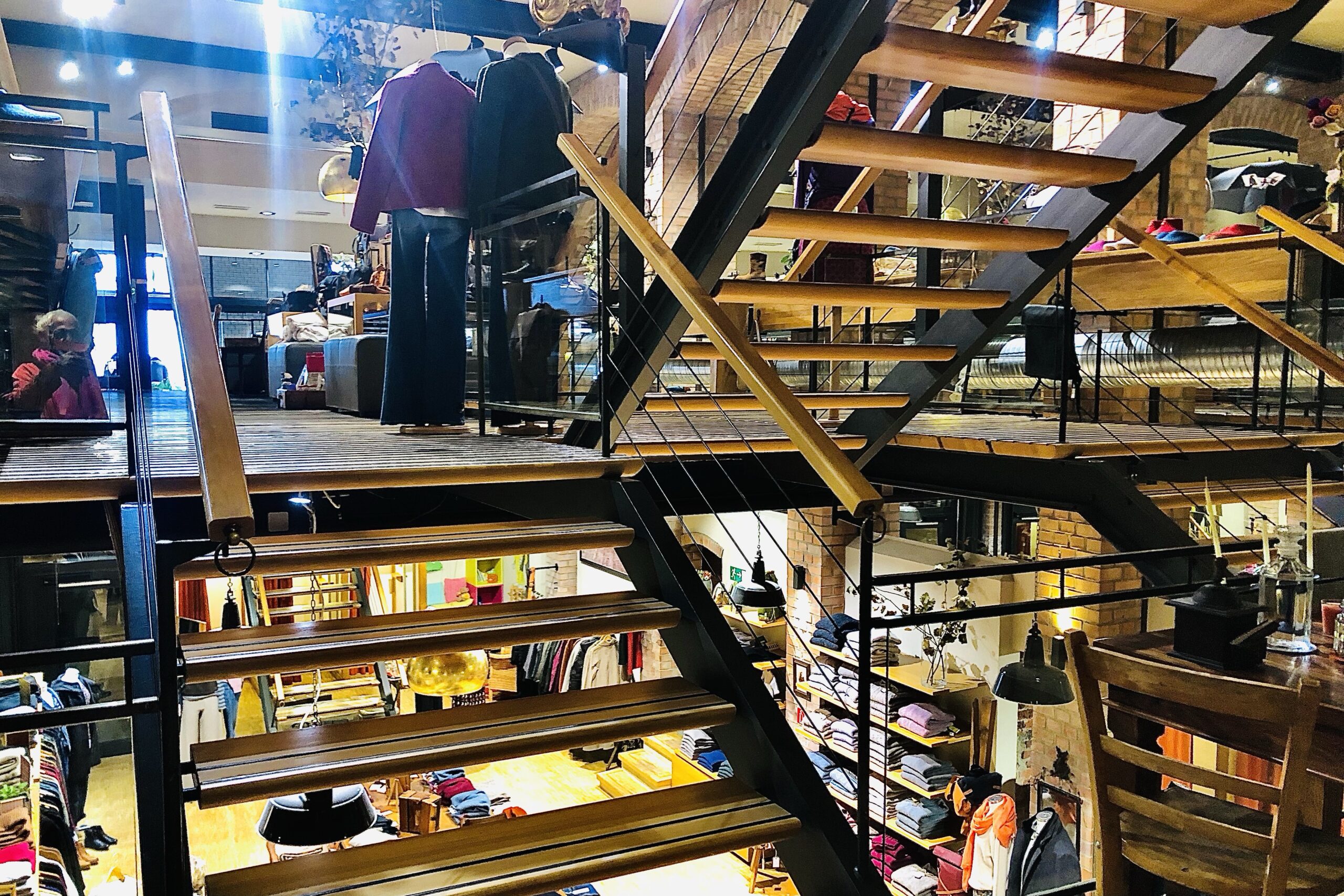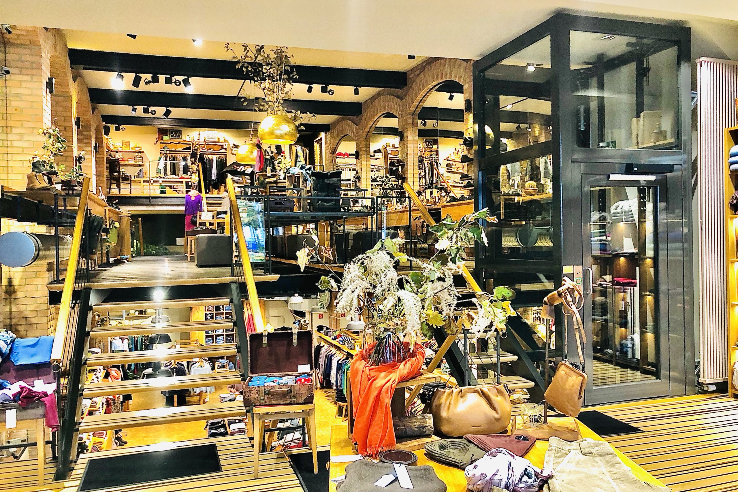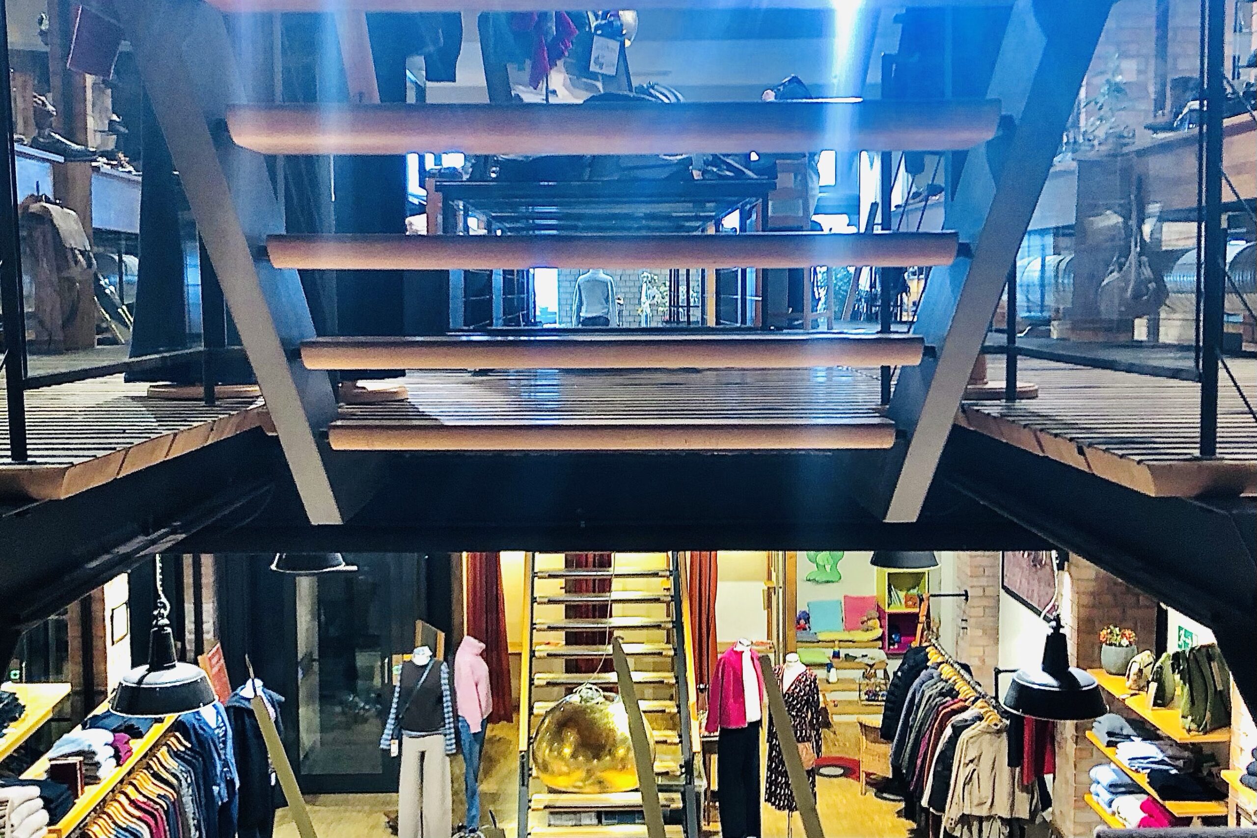 elias hatte in der stadt einen laden entdekkt, den er mir allein wegen der interessanten innenarchitektur empfohlen hat. das sortiment war so edel wie das ambiente und ich mußte mich mal wieder im nichtkaufen üben, aber diese dekke hat überdeutlich nach mir gerufen. mit der frau, die mich bedient hat, hatte ich ein ausführliches gespräch (sie hatte allein 9 kinder großgezogen). sie hat sich neugierig nach meiner arbeit erkundigt und versprochen, nach ihrer schicht beim OMNIBUS vorbeizukommen, was sie dann tatsächlich auch am späten nachmittag getan hat.